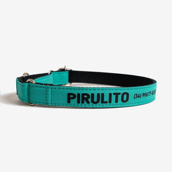 Coleira martingale personalizada turquesa