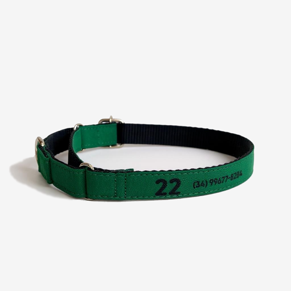Coleira martingale, tecido poliester e nylon personalizada com nome identificação pet