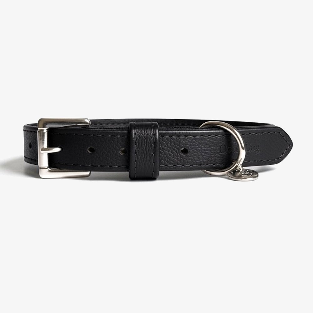 Coleira Essencial em Couro Legítimo Minimal Black- Oops! Dog