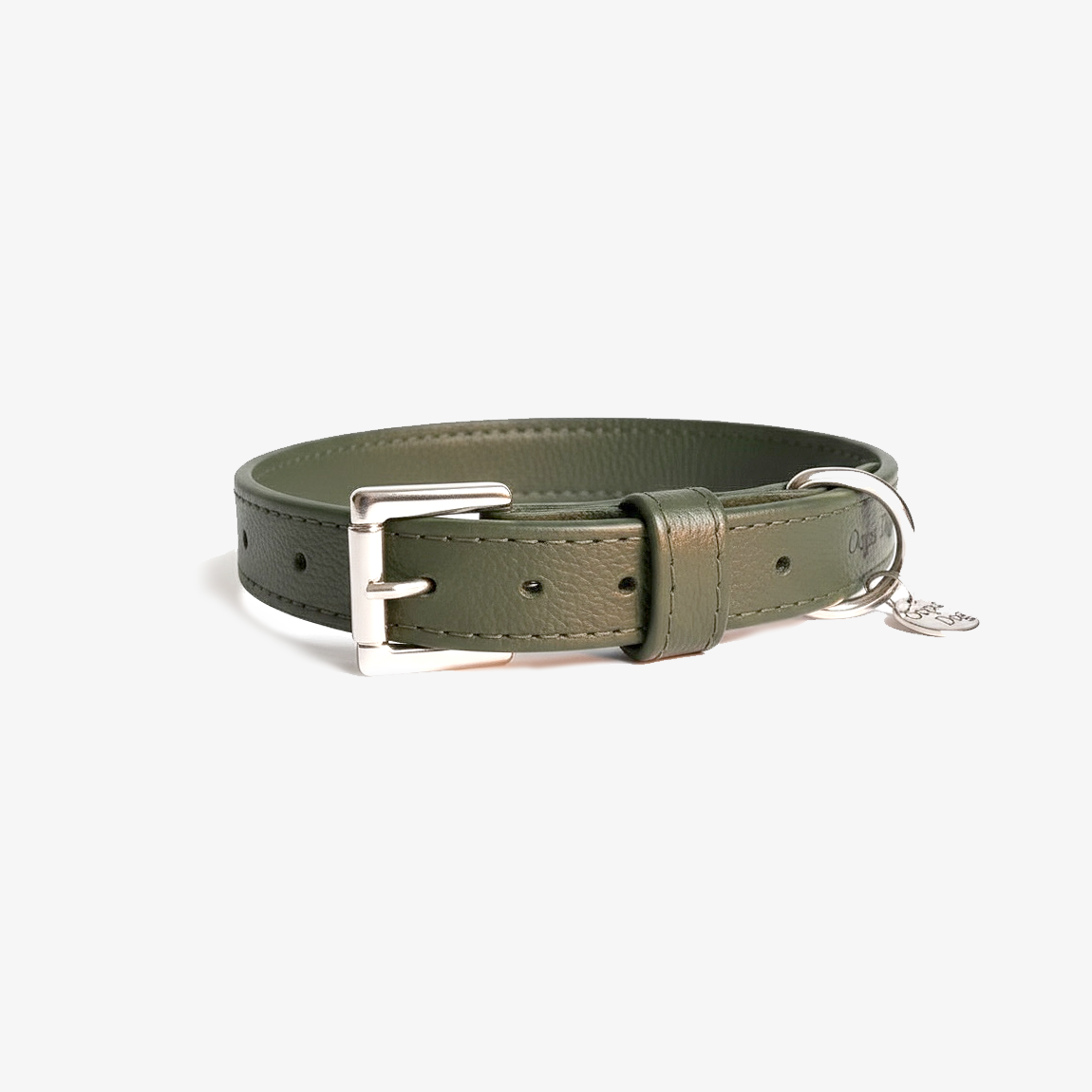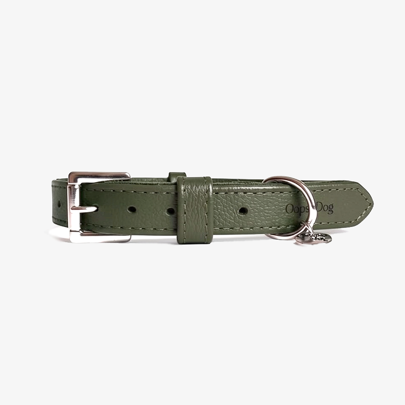 Coleira Essencial em Couro Legítimo Urban green- Oops! Dog