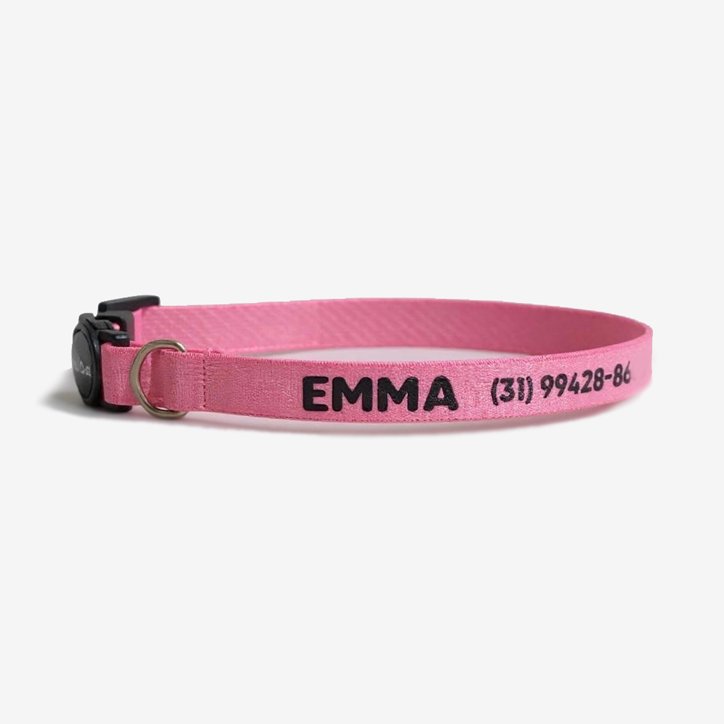 Coleira gato com nome e telefone rosa