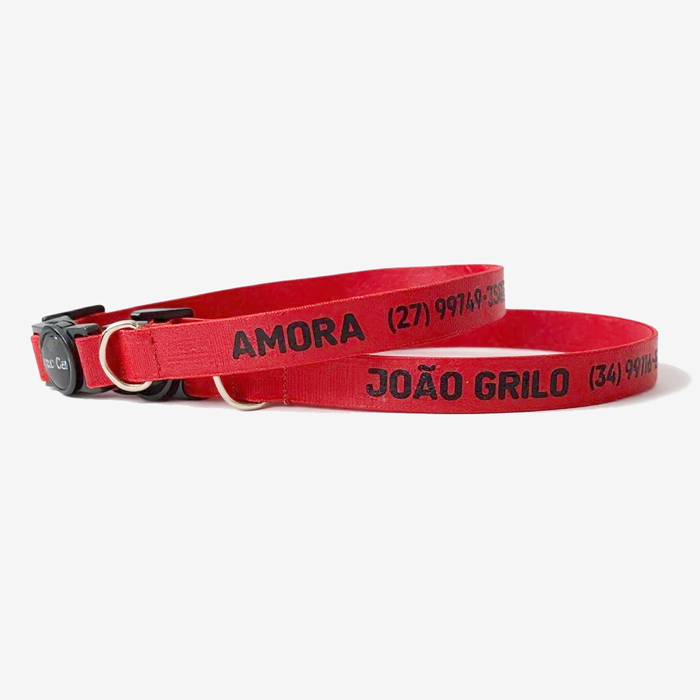 Coleira gato com nome e telefone vermelha