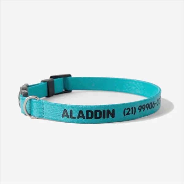 Coleira para gatos feita em couro macio, fecho anti enforcamento breakaway.